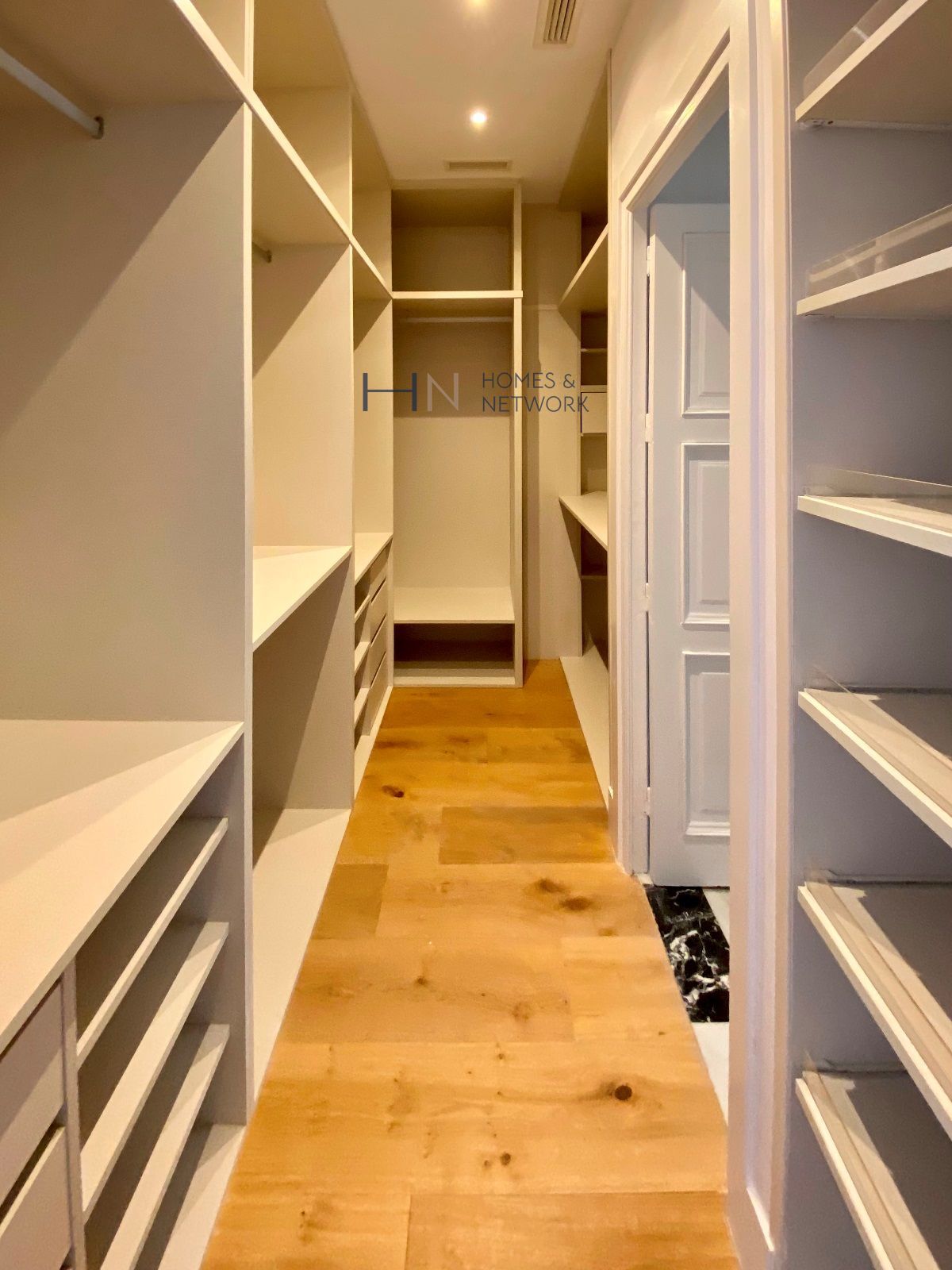 Se distribuye en un gran hall de entrada con luz natural que da acceso a un salón muy amplio y al comedor. Tiene chimenea y una amplia terraza/bow window. La cocina con office, tiene lavadero independiente y cuarto de servicio con su propia entrada y acceso a montacargas.