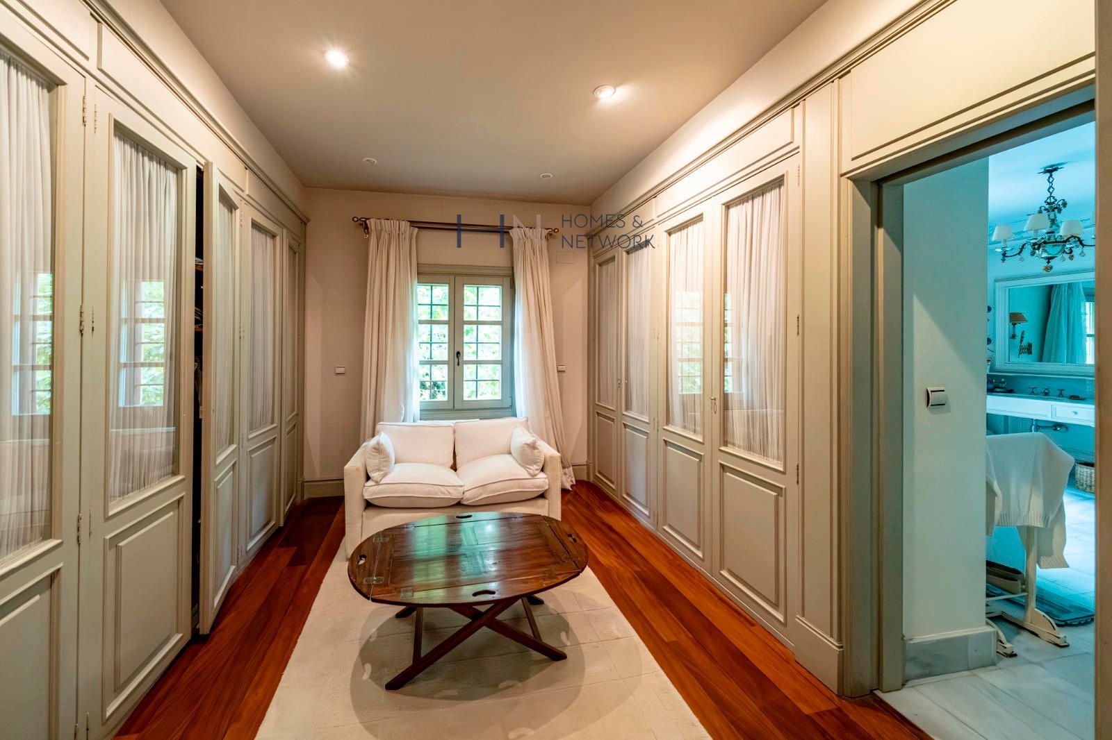 Fabulosa propiedad de diseño único, inspirada en una elegante villa romana, ubicada en una de las zonas más exclusivas y privadas de Somosaguas. Con una sólida construcción de 1.202 m² distribuidos en dos alturas y asentada sobre una parcela llana de 3.106 m². Esta residencia ofrece una privacidad excepcional y una localización privilegiada, con acceso rápido y cómodo a la Carretera de Castilla.