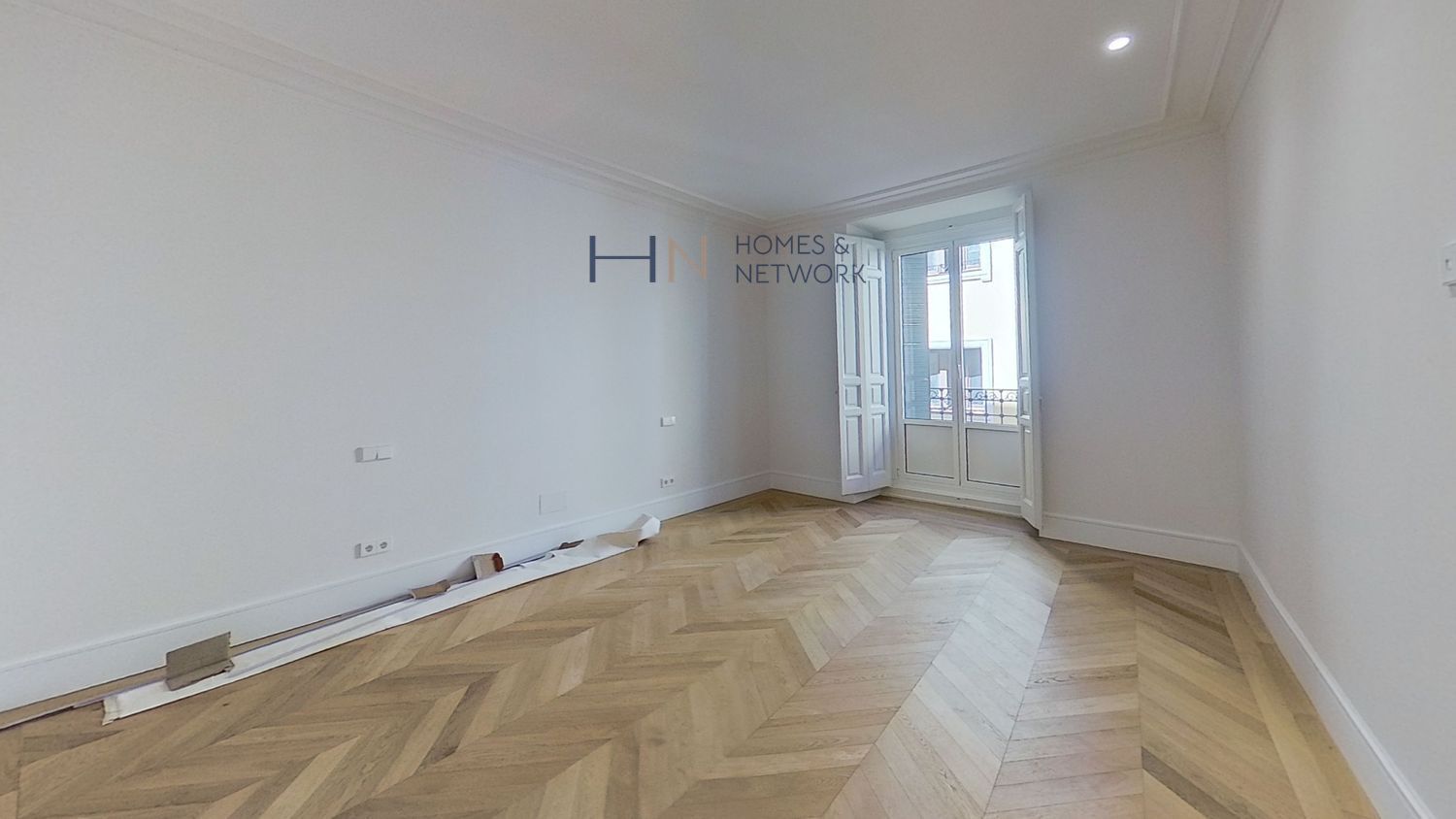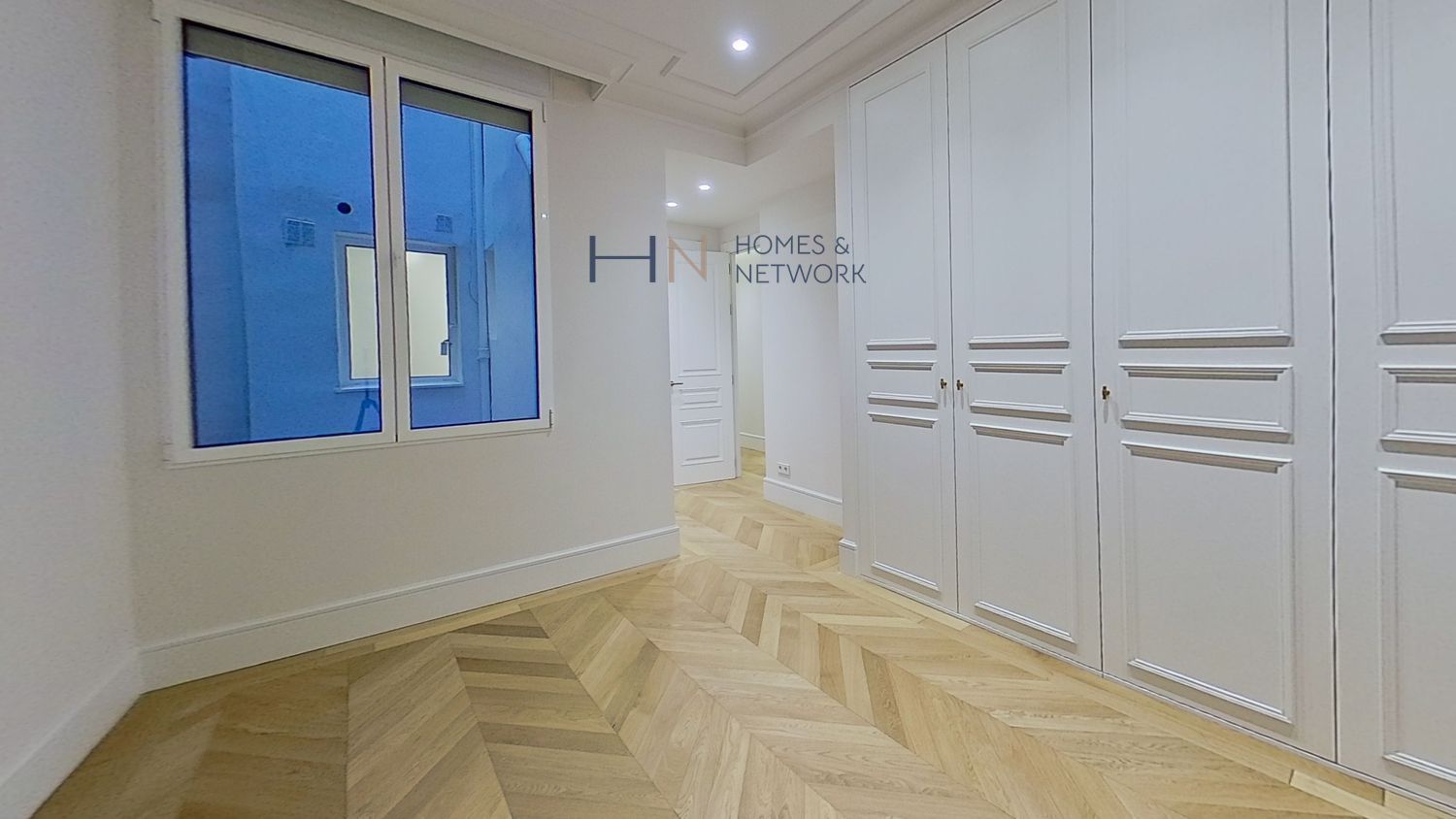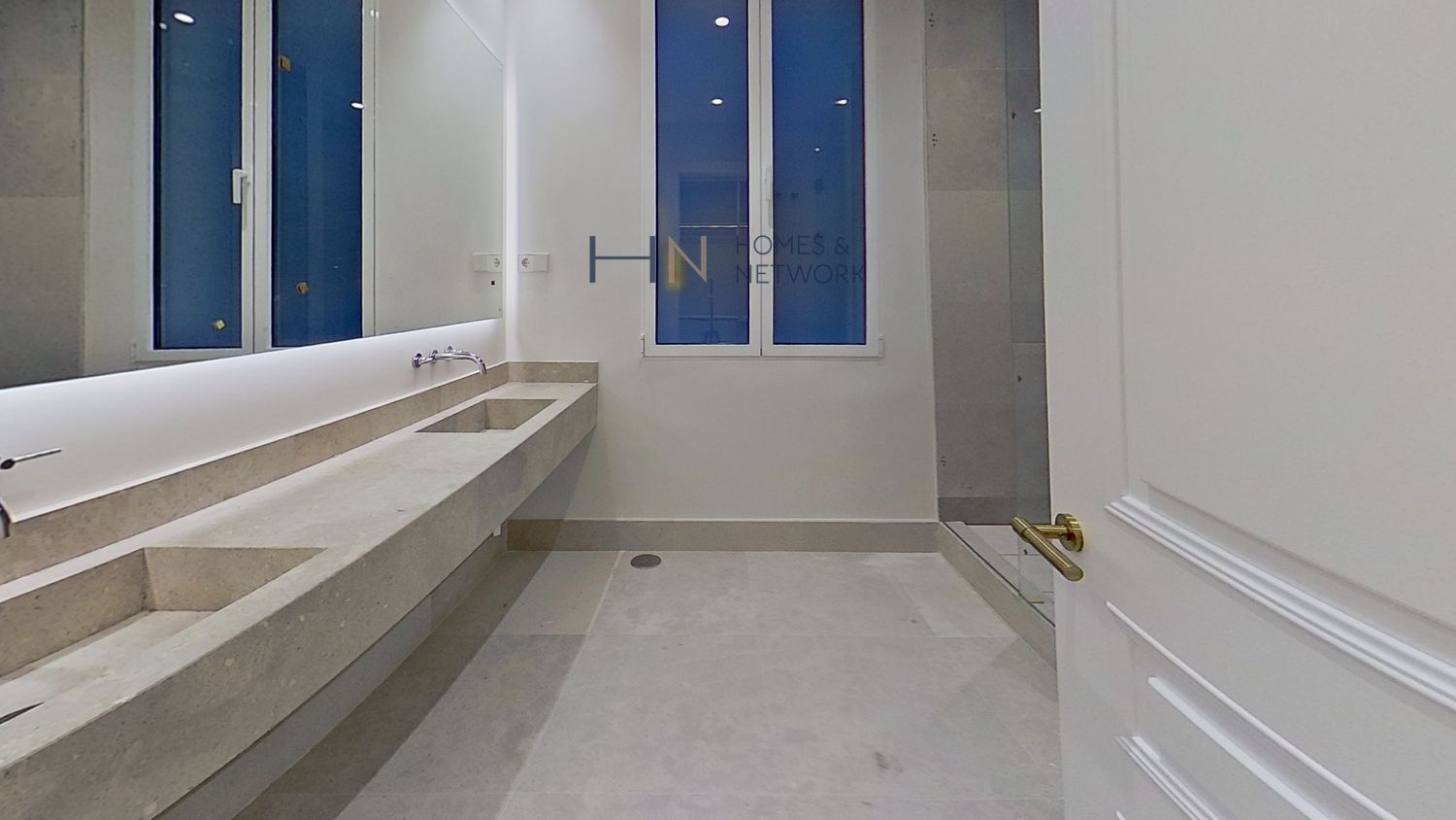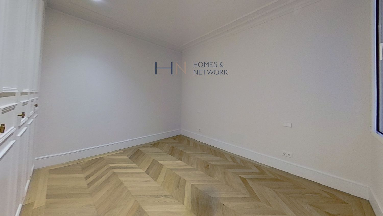 La vivienda ocupa una 1ª planta muy alta, lo que le otorga una luminosidad excepcional. Completamente reformado cuenta con un espacioso salón-comedor con 3 balcones, una cocina totalmente equipada, 3 dormitorios con vestidor y baño en suite, un baño de invitados y una práctica zona de lavandería.