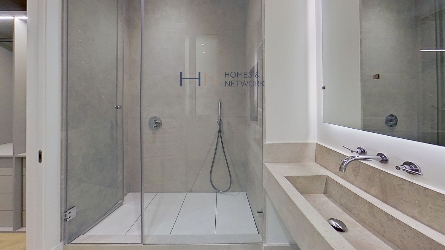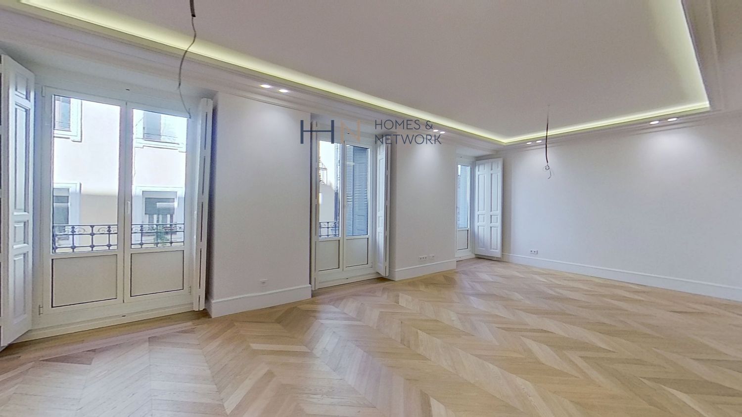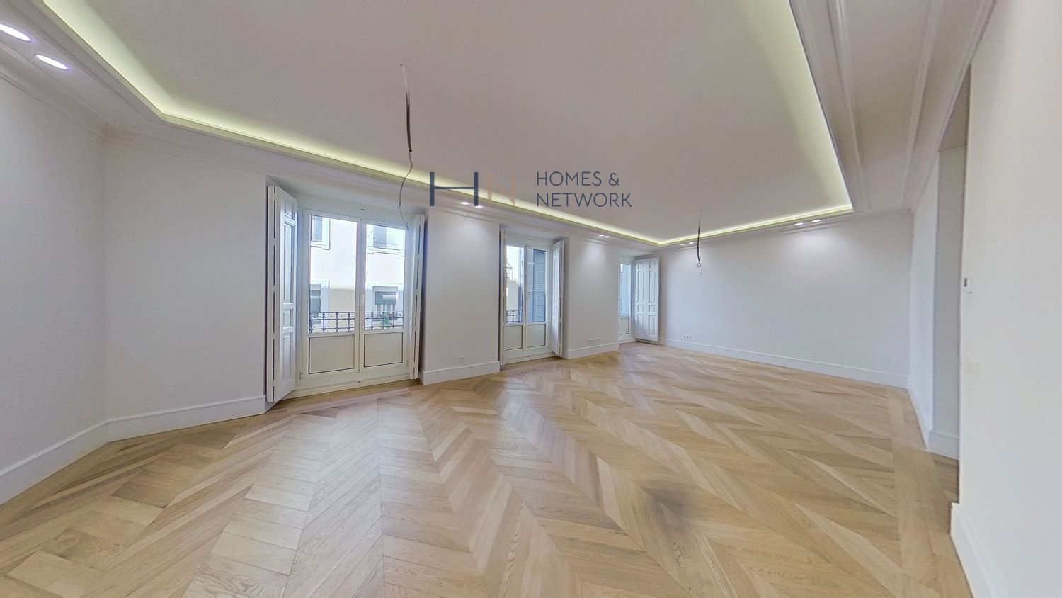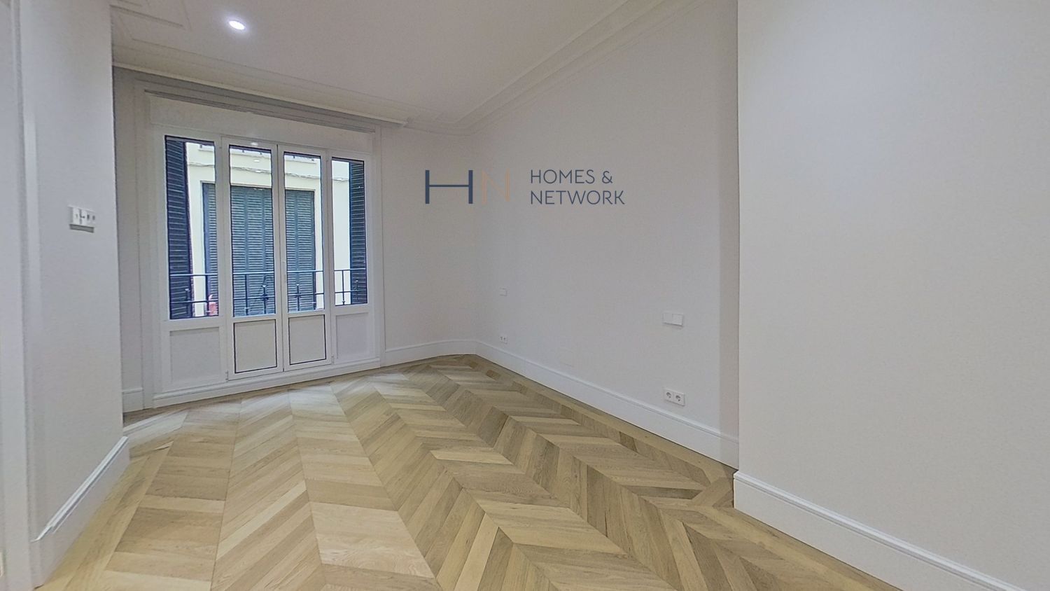 La vivienda ocupa una 1ª planta muy alta, lo que le otorga una luminosidad excepcional. Completamente reformado cuenta con un espacioso salón-comedor con 3 balcones, una cocina totalmente equipada, 3 dormitorios con vestidor y baño en suite, un baño de invitados y una práctica zona de lavandería.