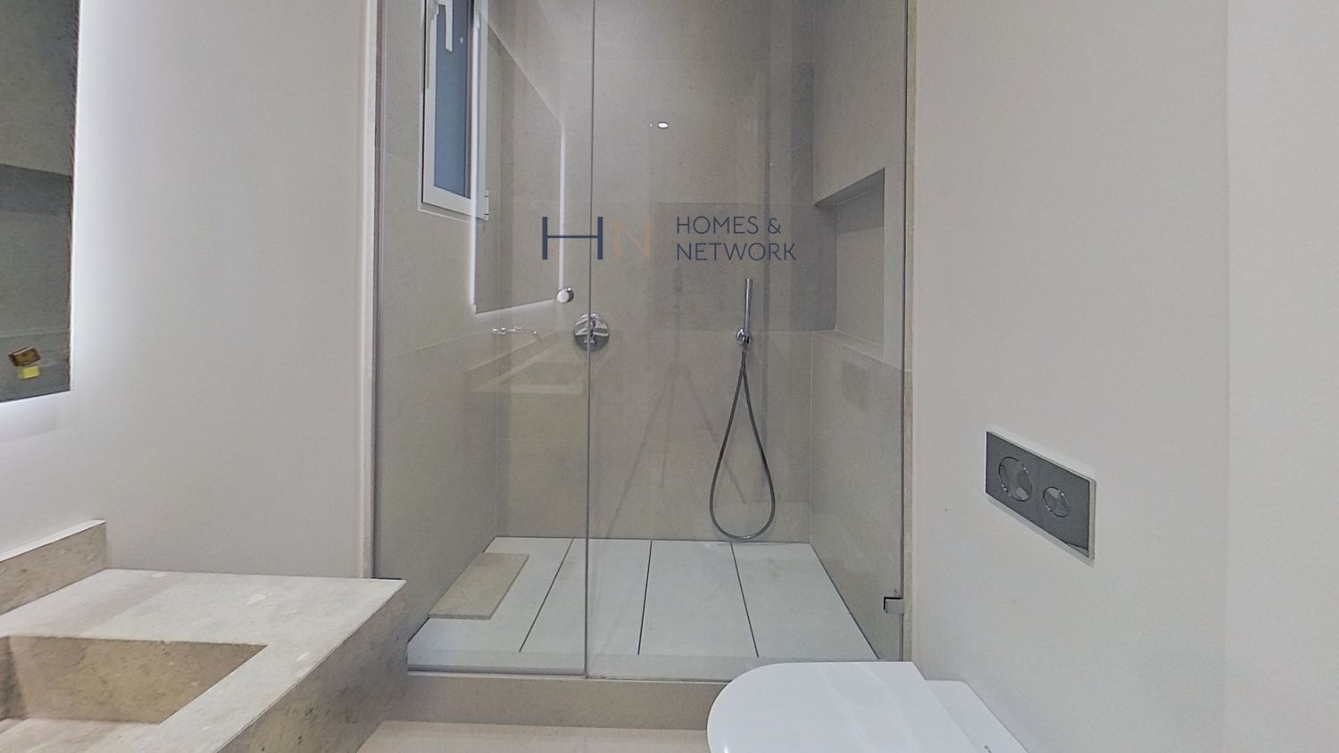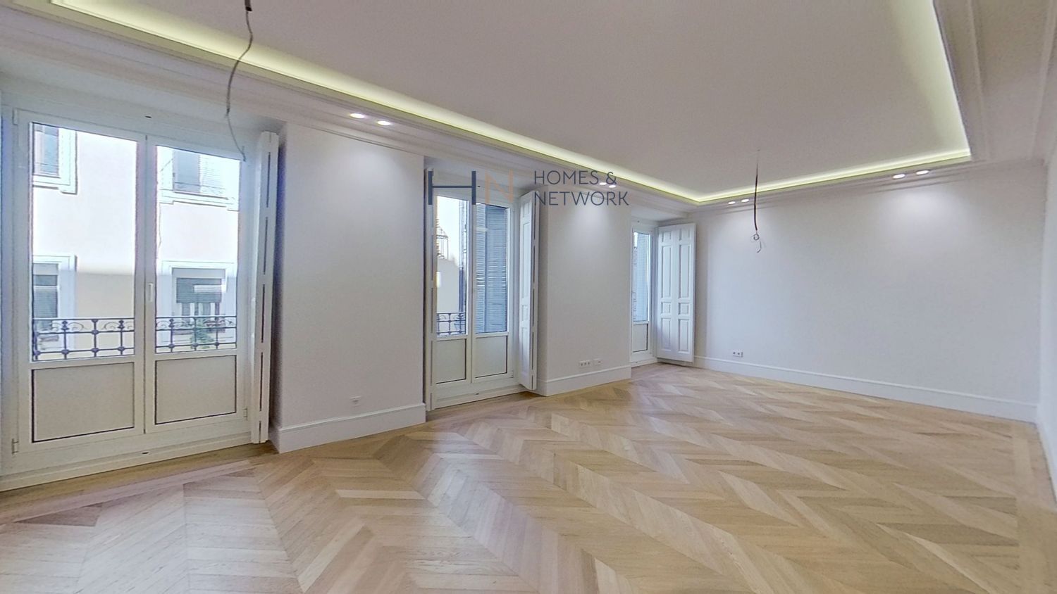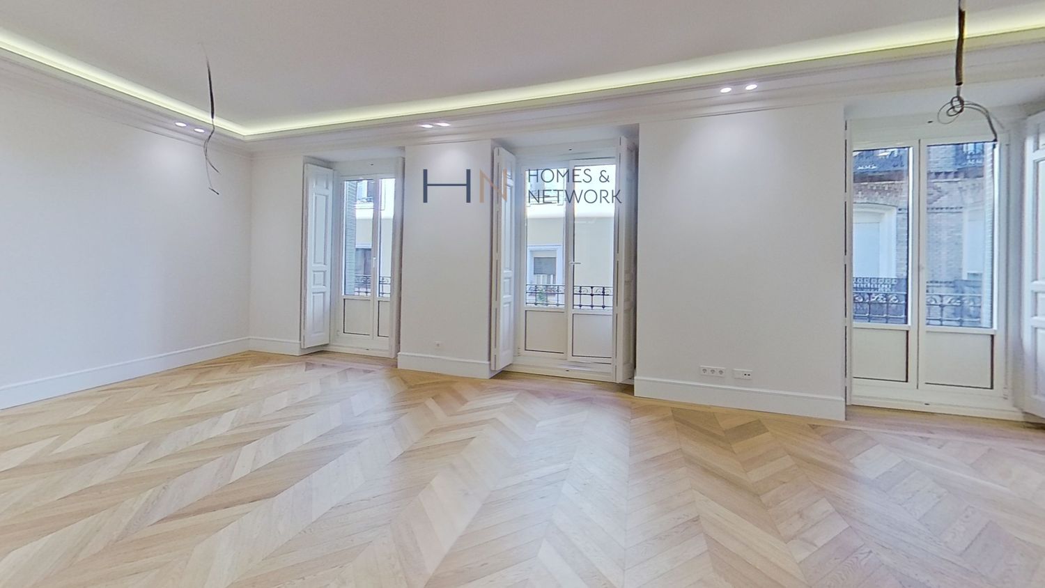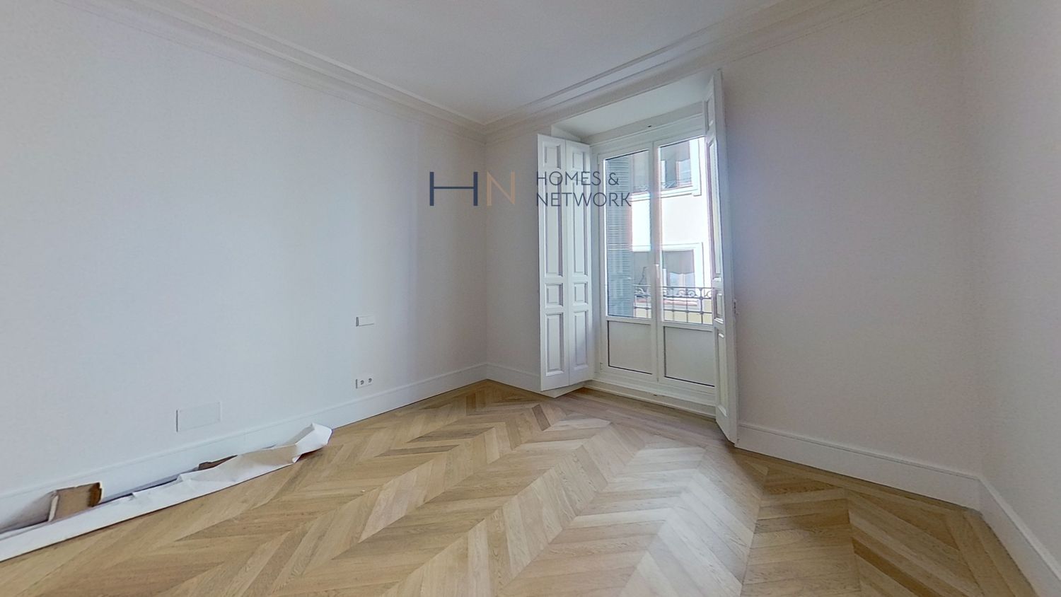 La vivienda ocupa una 1ª planta muy alta, lo que le otorga una luminosidad excepcional. Completamente reformado cuenta con un espacioso salón-comedor con 3 balcones, una cocina totalmente equipada, 3 dormitorios con vestidor y baño en suite, un baño de invitados y una práctica zona de lavandería.