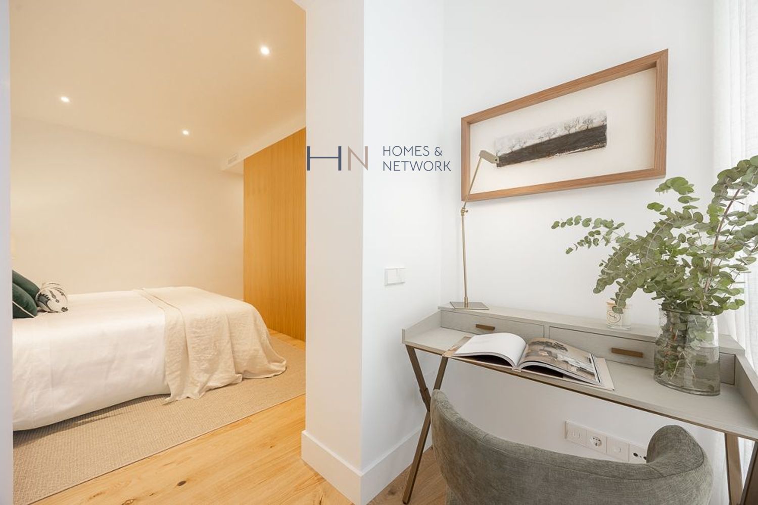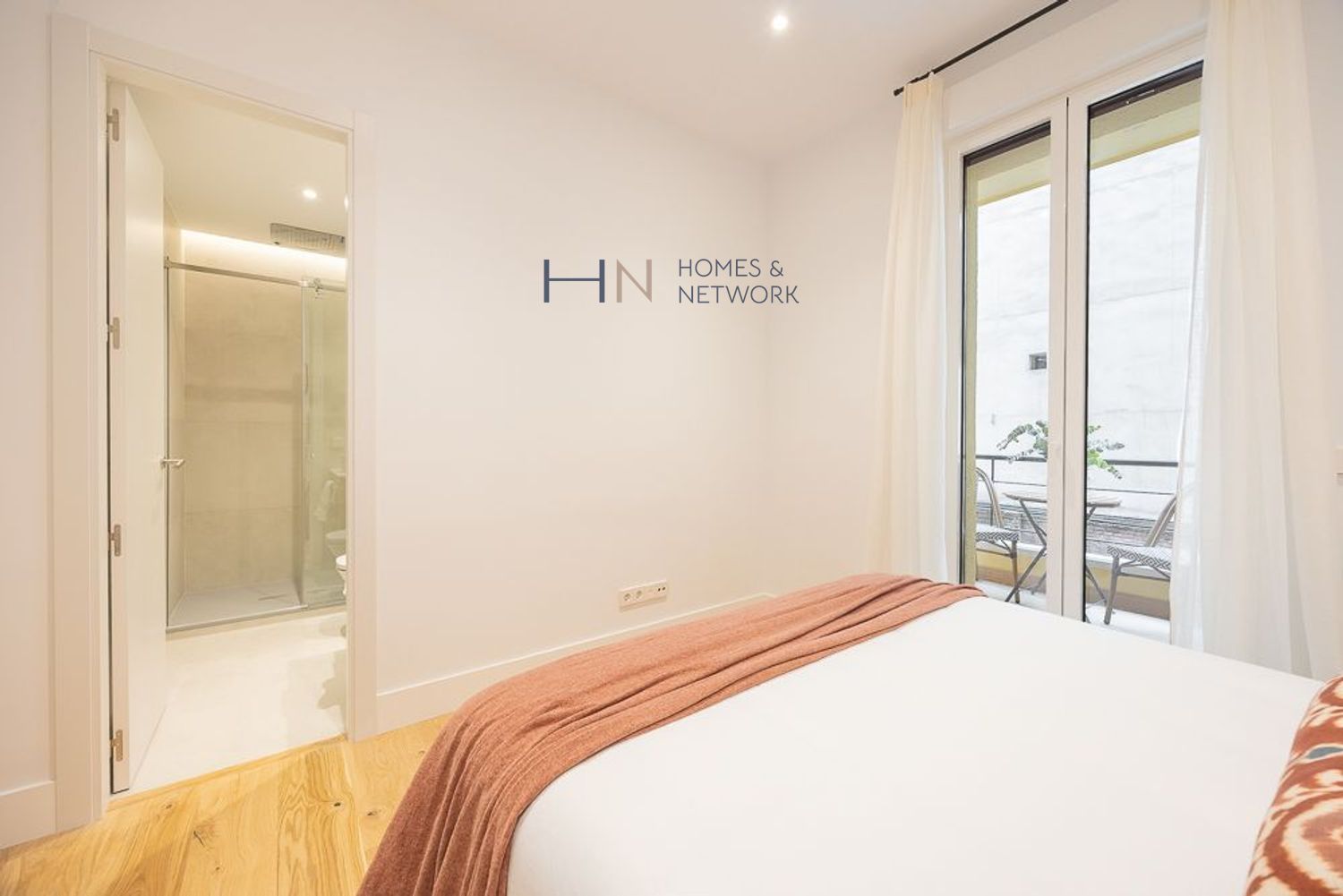 El piso cuenta con 3 dormitorios dobles, cada uno con su propio baño en suite. El dormitorio principal cuenta con espacio para un despacho y un vestidor. Además, podrás disfrutar de una bonita terraza accesible desde uno de los dormitorios.
